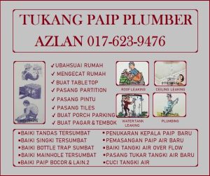 PERKHIDMATAN KERJA-KERJA PAIP BUAT PAIP BARU DARI MINTER KE TANGKI AIR DAN SINKI DAPUR DAN BERKAITAN DANGAN AIR DERECT BUAT PAIP BYPASS BAIKI PAIP BOCOR DALAM DINDING BAIKI KEPALA PAIP PATAH DALAM DINDING BAIKI PAIP SINKI TERSUMBAT BAIKI TANDAS TERSUMBAT BAIKI BOTTLE TRAP LANTAI TERSUMBAT BAIKI MAINHOLE TERSUMBAT BAIKI FLUSH JAMBAN DAN TUKAR YANG BARU...
